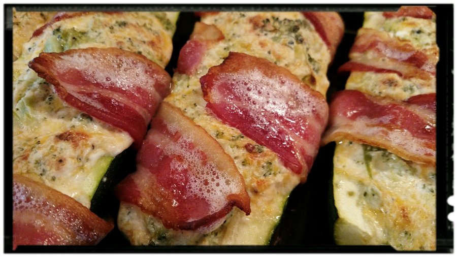 Bake at 350* for 40 minutes, or u til zucchini is tender. Then broil for an additional 3-5 minutes, if needed for additional desired doneness of bacon and to add desired color to topping.