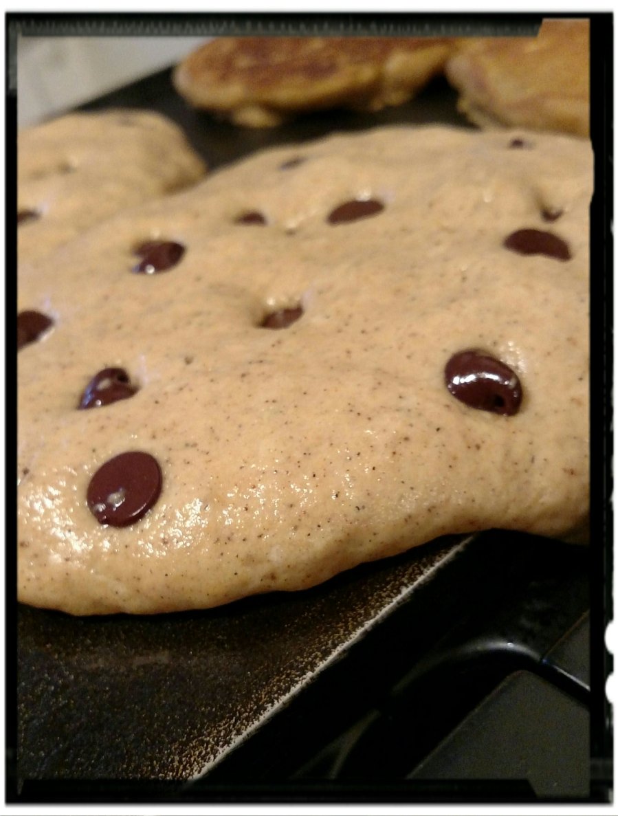 I add chocolate chips sparingly once they are on the griddle.